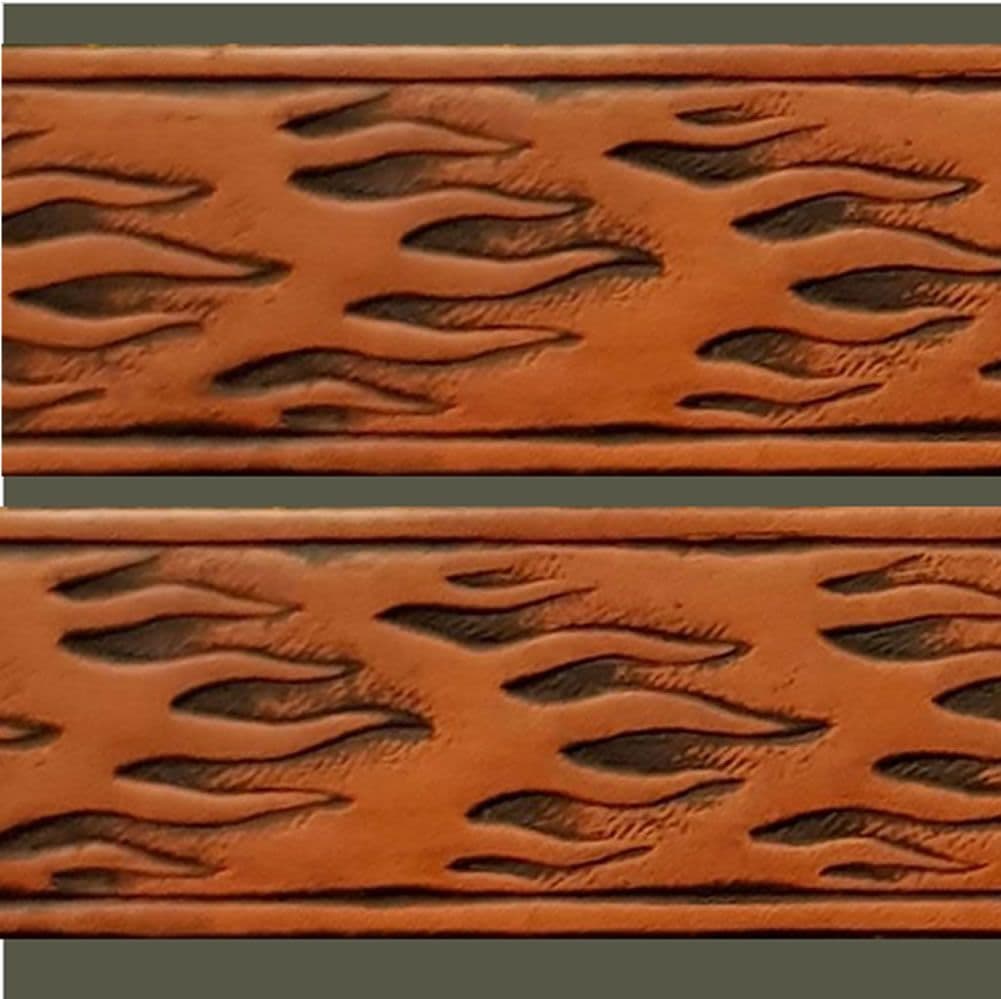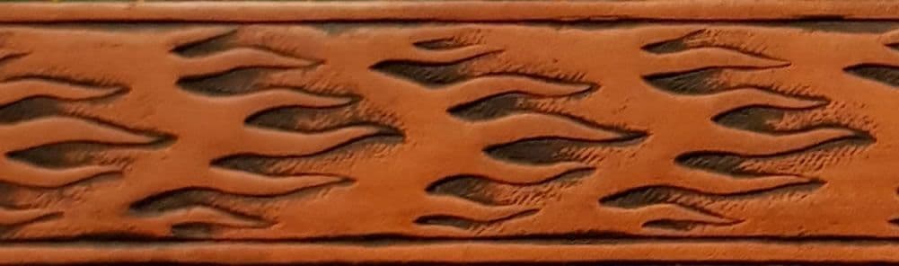 Flames Horizontal Embossed Full Grain Leather Belt . 1½" (38mm) Wide. Design: EM051